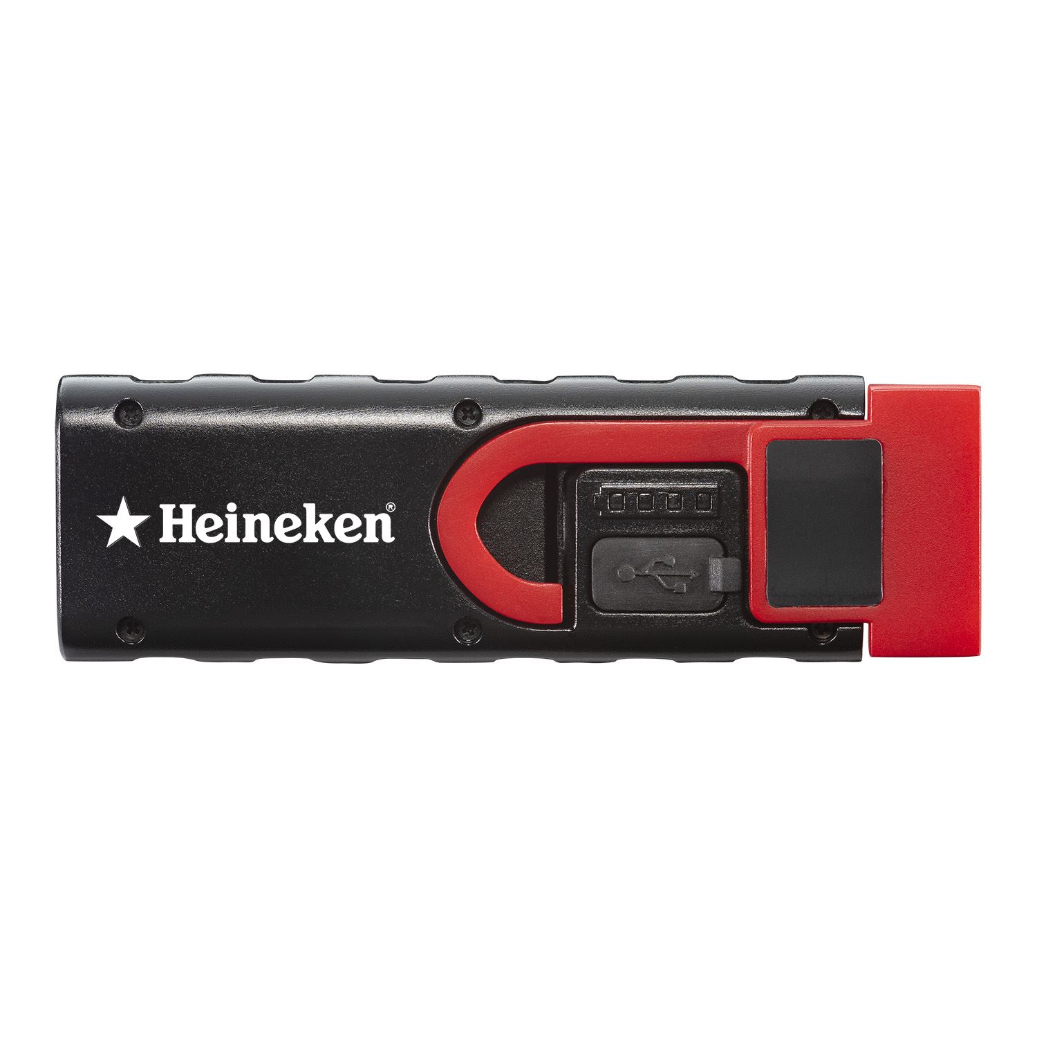 This versatile task light comes with multiple lighting and positioning features. Choose between LED flashlight and C.O.B. area light with three output modes: high, medium, and low. It has a fold-out hook with 180-degree rotation that allows the light to be hung for hands-free lighting. Doubles as a stand with a magnetic base. Runs on a rechargeable lithium-ion battery with a 31-hour max run time. Rated IP57 dust resistant and waterproof. Boxed. Pad print 1-2 colors. (Price includes 1 color, upcharges apply for second color). 0.75″ H x 2″ W x 6.25″ L