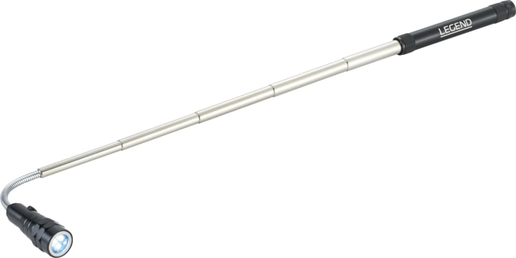 Push button on/off. 3 LED retractable telescopic flashlight with magnet head. 4 button cell batteries included. Light is 6 Lumen. 0.00″ D x 0.00″ W x 6.70″ H