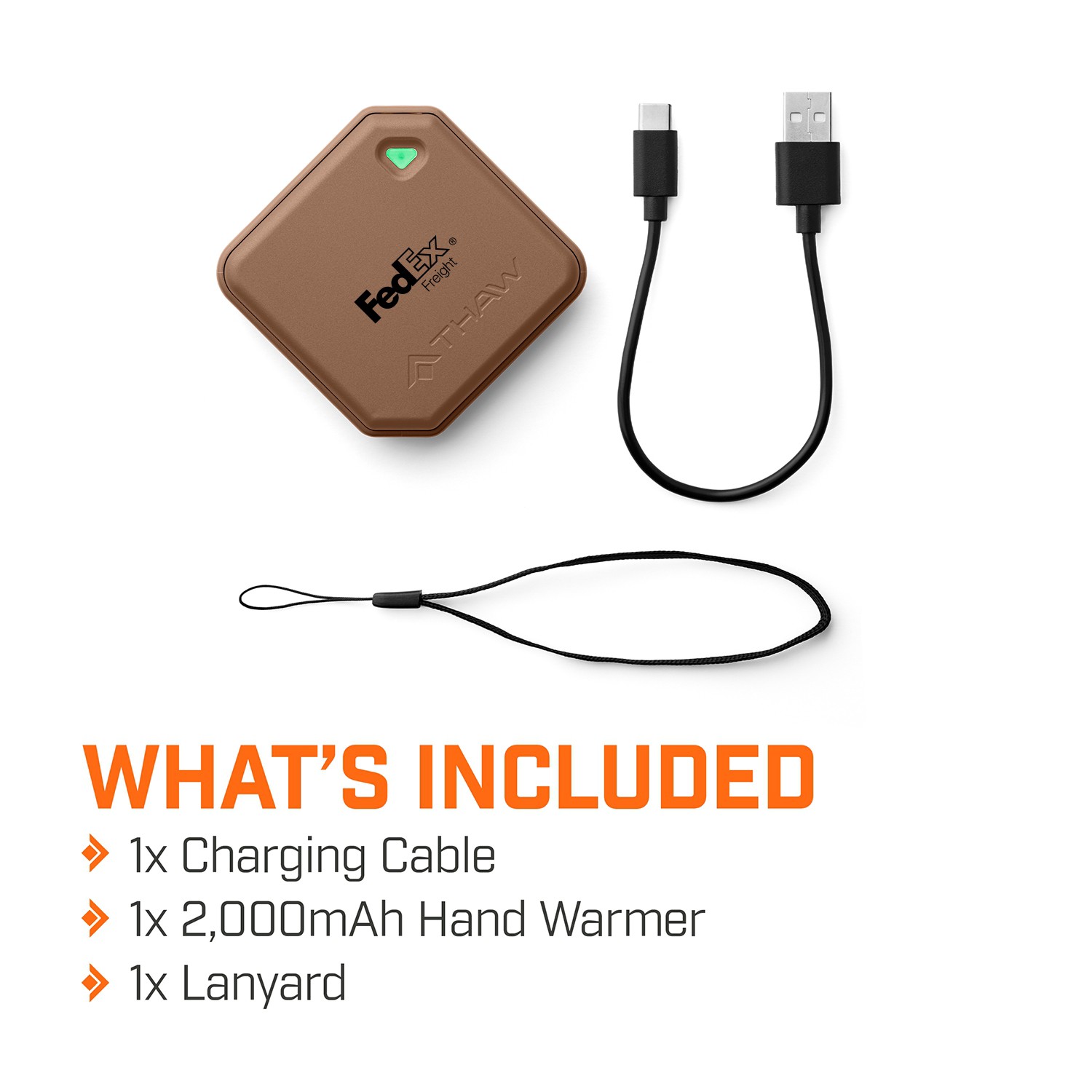 Nothing keeps you from enjoying the outdoors more than cold hands; cold, stiff fingers make even the simplest tasks nearly unbearable. The THAW 2K Recharageable Hand Warmer gives your fingers much needed relief and easily fits in your pocket, so it’s always with you. The simple one-button control activates the double-sided heating so you can feel the warmth on your full grip. It heats up to 113ºF and lasts up to 4 hours, and the 2,000mAh lithium-ion battery is easily recharged with the USB-C port. The integrated LED light can be activated even while the heat is on, so you can illuminate your task without freezing your fingers. Pad print your logo in 1-color. Boxed. Complies with Prop 65. 1.63″ H x 0.59″ W x 3.63″ L